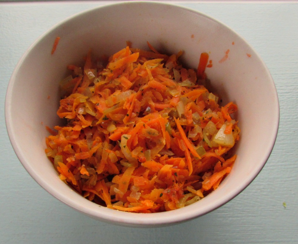 5. Heat oil in a skillet and place onions in it. Cook until translucent. Add the carrots and cook until soft. While cooking, season with salt, pepper and parsley.