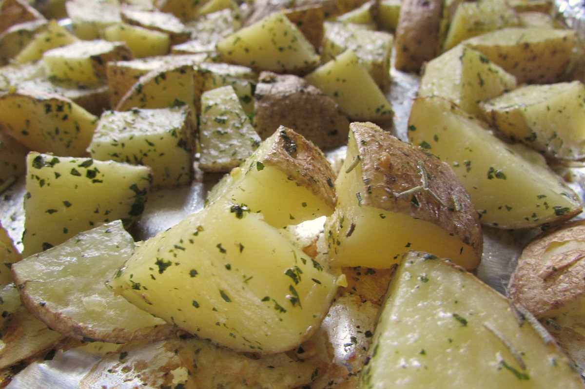 Mix the oil and the spices together and pour over potatoes, making sure each piece is covered