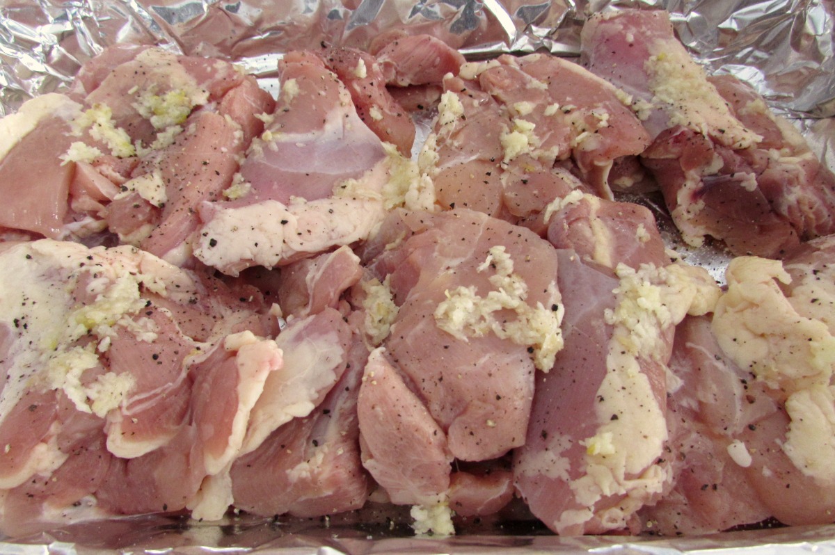 - Arrange the thighs on the foil and sprinkle with salt and pepper