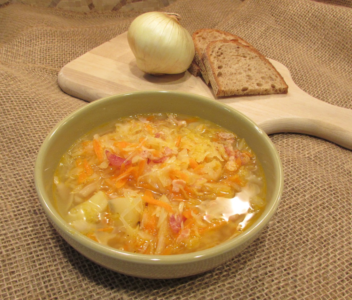 Sauerkraut, or pickled cabbage, is a popular popular side dish in Eastern European and Germanic cuisine. It was a great source of vitamins during winter before refrigeration of products was available. In Lithuanian, Russian, Polish and Ukrainian cuisines it was also pickled with shredded carrots, and could be used as a filling for rolls/pastries, cooked in stews and, naturally, as the main ingredient in a soup.